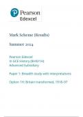 Pearson Edexcel In GCE History (8HI0/1H) Advanced Subsidiary Paper 1: Breadth study with interpretations Option 1H: Britain transformed, 1918–97 Mark scheme June 2024