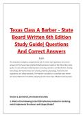 Texas Class A Barber - State Board Written 6th Edition Study Guide| Questions And Correct Answers