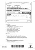 2025 Pearson Edexcel GCSE Greek PAPER 3 1GK0/3H QUESTION PAPER : Reading and understanding in Greek (Higher Tier