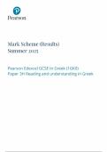2025 Pearson Edexcel GCSE Greek PAPER 3 MARK SCHEME 1GK0/3H : Reading and understanding in Greek