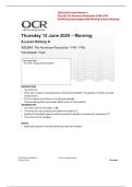 OCR A Level 2025 History A Y212/01 The American Revolution 1740–1796 Question Paper | Official with Marking Scheme & Fully Worked Answers