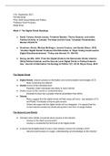 This document speaks to the breakdown of digitization in the political sphere. The impacts of internet polling and social media usage in a ever growing climate digital age. It looks at the differing digital divides from the first to third with an entire breakdown of each. As well as how the disparities created by a divide with the internet affect society as well as politics on a larger scale.