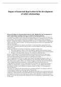 Discuss the impact of maternal deprivation in early childhood on the development of adult relationships including reference to studies of institutionalisation.