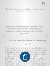 P6- Develop a coherent marketing mix for a new product or service’