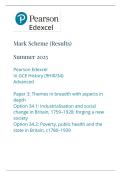 This document provides a clearly organised examiner mark scheme for Edexcel A Level History Paper 3 (9HI0/34) – June 2025. It reflects official examiner marking guidance and outlines how marks are awarded for source-based questions, interpretations, and extended historical essays.