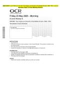 2025 OCR A Level History A Y316/01 Britain and Ireland 1791–1921 Combined Exam paper along with marking scheme