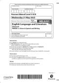 Pearson Edexcel Level 3 GCE English Language and Literature Advanced PAPER 1: Voices