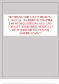 TESTBANK FOR ADULT MEDICAL SURGICAL 11th EDITION CHAPTER 1- 68 WITH QUESTIONS AND 100% CORRECT ANSWERS|| LATEST 2025 WITH VERIFIED SOLUTIONS|| ASSURED PASS!!!