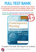 - Test Bank For Contemporary Nursing Issues, Trends, & Management 9th Edition by Barbara Cherry, Susan Jacob 9780323776875 Chapter 1-28 Complete Guide.