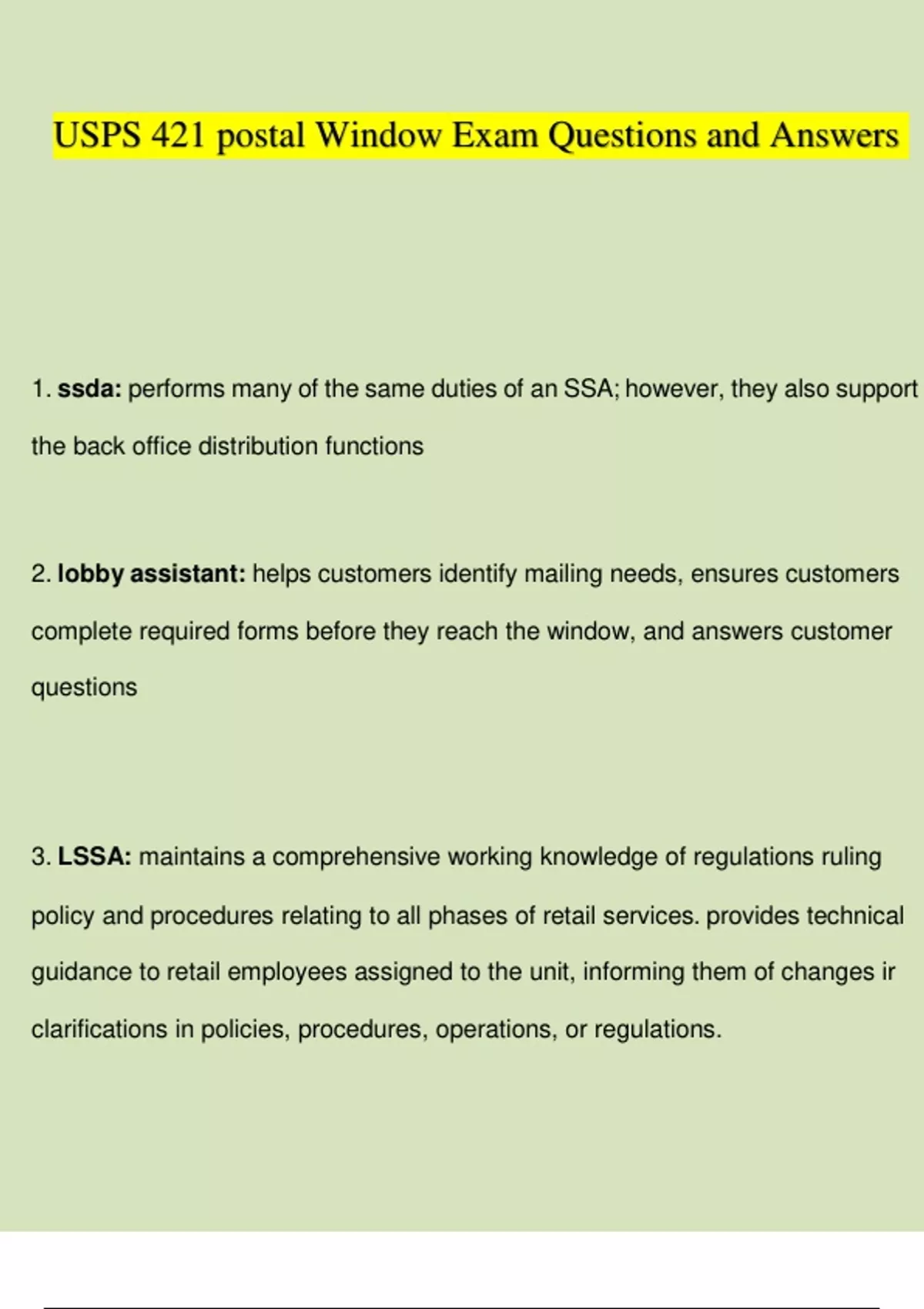 USPS 421 STUDY BUNDLE (COMPLETE PACKAGE) (2022/2023) (Verified Answers)