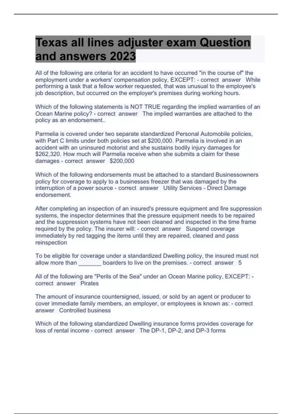 BUNDLE OF TEXAS UDJUSTER QUESTION AND ANSWER 2023