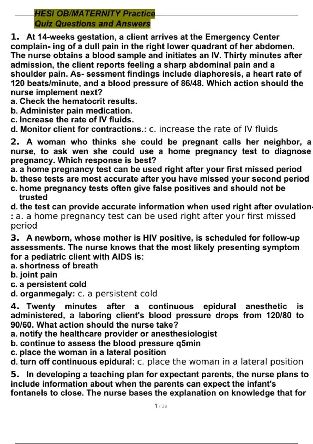 OB HESI/FINAL Questions And Answers 2022/2023//PRACTISE HESI QUESTIONS AND ANSWERS 2022//OB-Maternity HESI-NCLEX Hints Questions And Answers 2022/2023//Obstetrics/Maternity HESI Practice Questions And Answers 2022/2023//OB/Maternity HESI Assignment exam Q