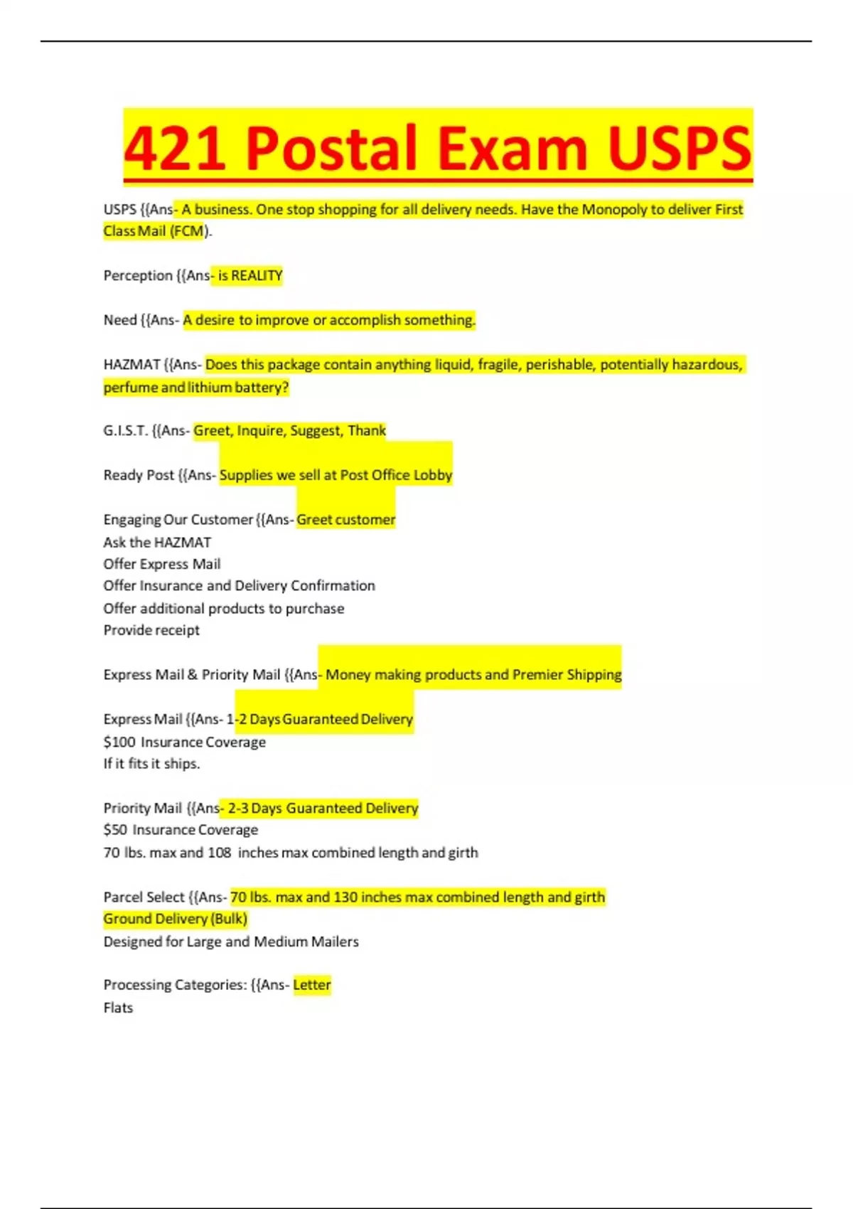 1 Exam (elaborations) USPS Exam 421 Window Clerk Practice 2 Exam (elaborations) USPS 421 Window Clerk Study Guide Exam Questions and Correct Answers (Verified by Expert) 3 Exam (elaborations) USPS Exam 421 Window Clerk – 112 Questions And Answers Verified. 4 Exam (elaborations) 421 Postal Exam USPS