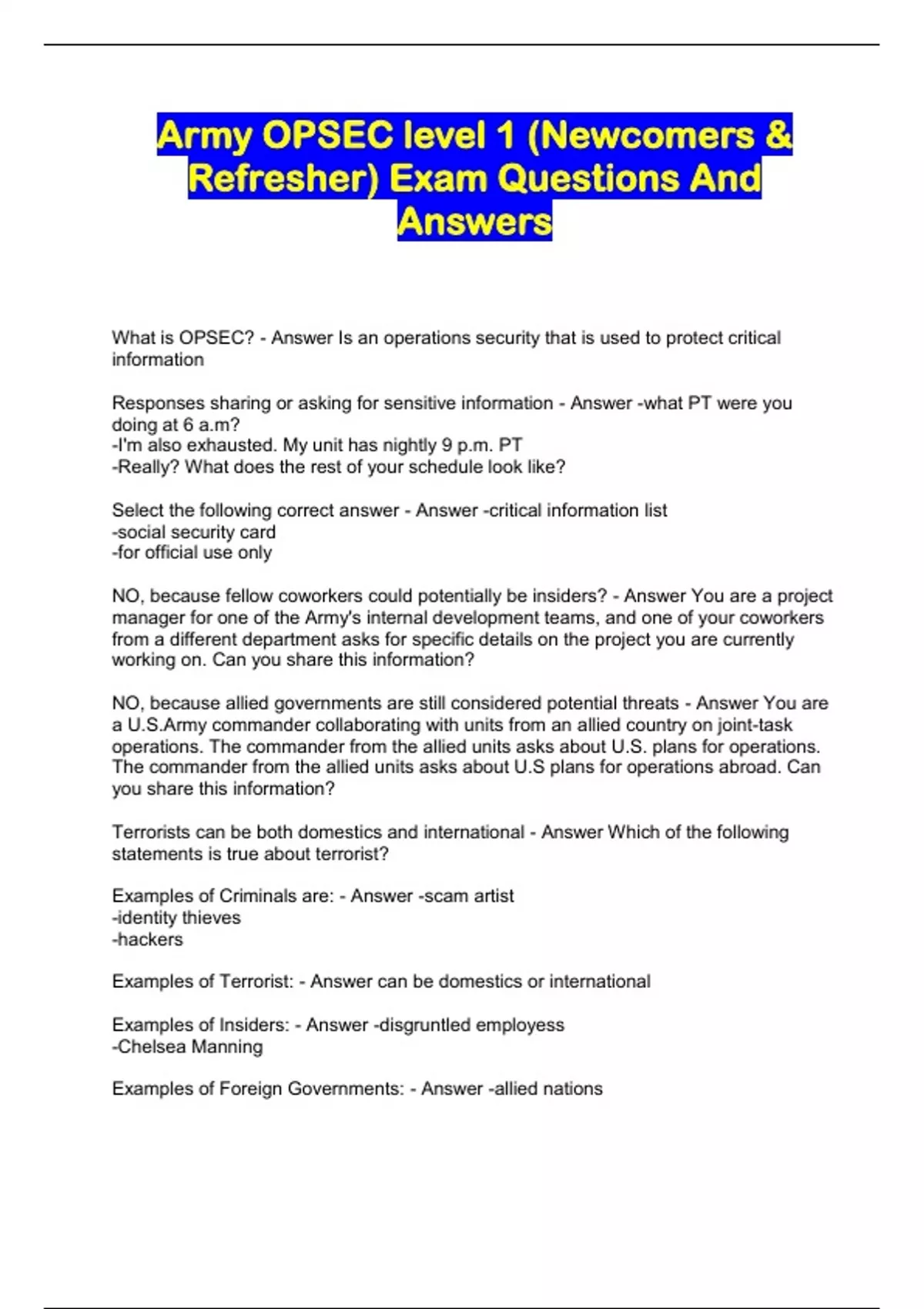 OPSEC Level 1 and II Packaged Exams...
