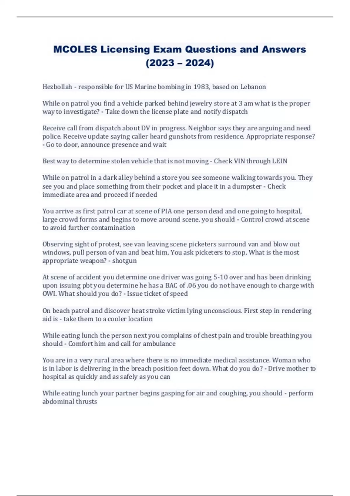 MCOLES Licensing Exam Questions and Answers (2023 – 2024)
