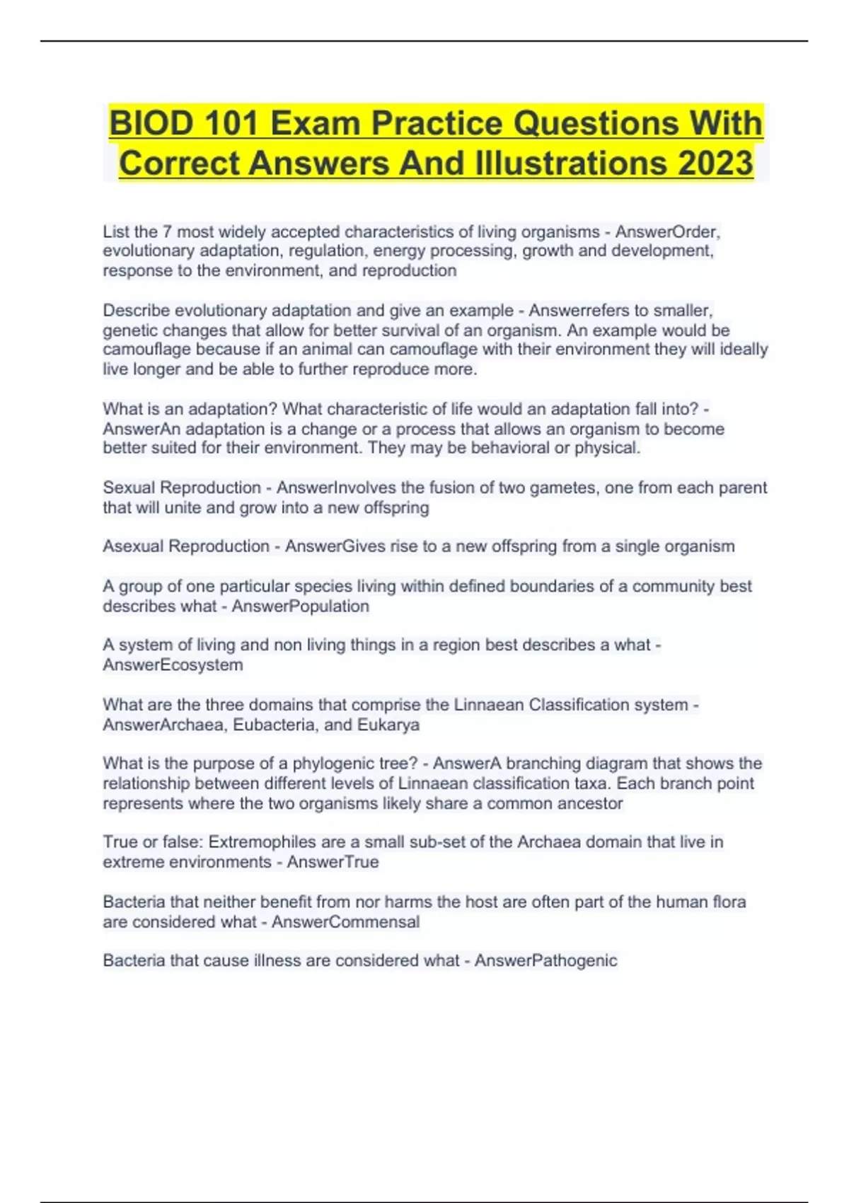 BUNDLE BIOD PRACTICE EXAM QUESTIONS WITH CORRECT ANSWERS 2023