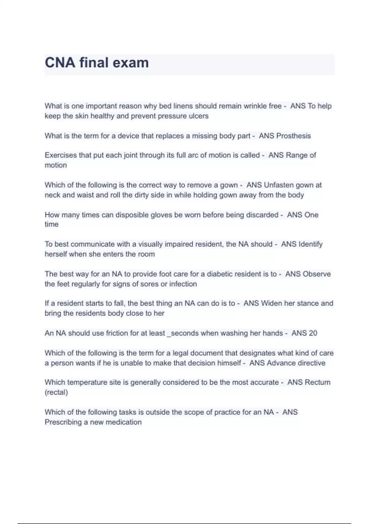 CNA Final Exam/Practice Test Questions & Answers 2023 ( A+ GRADED 100% VERIFIED)