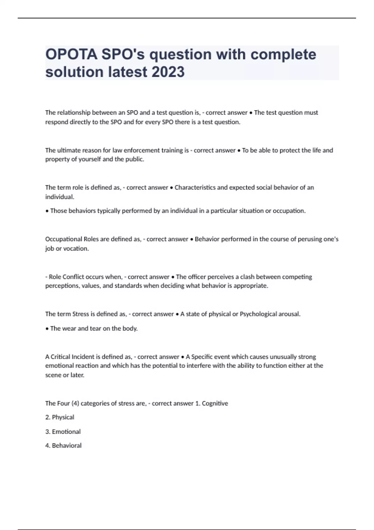 1 Exam (elaborations) OPOTA SPO 2019/2020 questions with correct answered (updated) 2 Exam (elaborations) FCSO OPOTA Corrections questions with correct answers latest 2023 3 Exam (elaborations) OPOTA SPO with complete solution 2023 4 Exam (elaborations) Unit 1 SPO s - Administration – OPOTA correctly answered 2023 5 Exam (elaborations) OPOTA SP