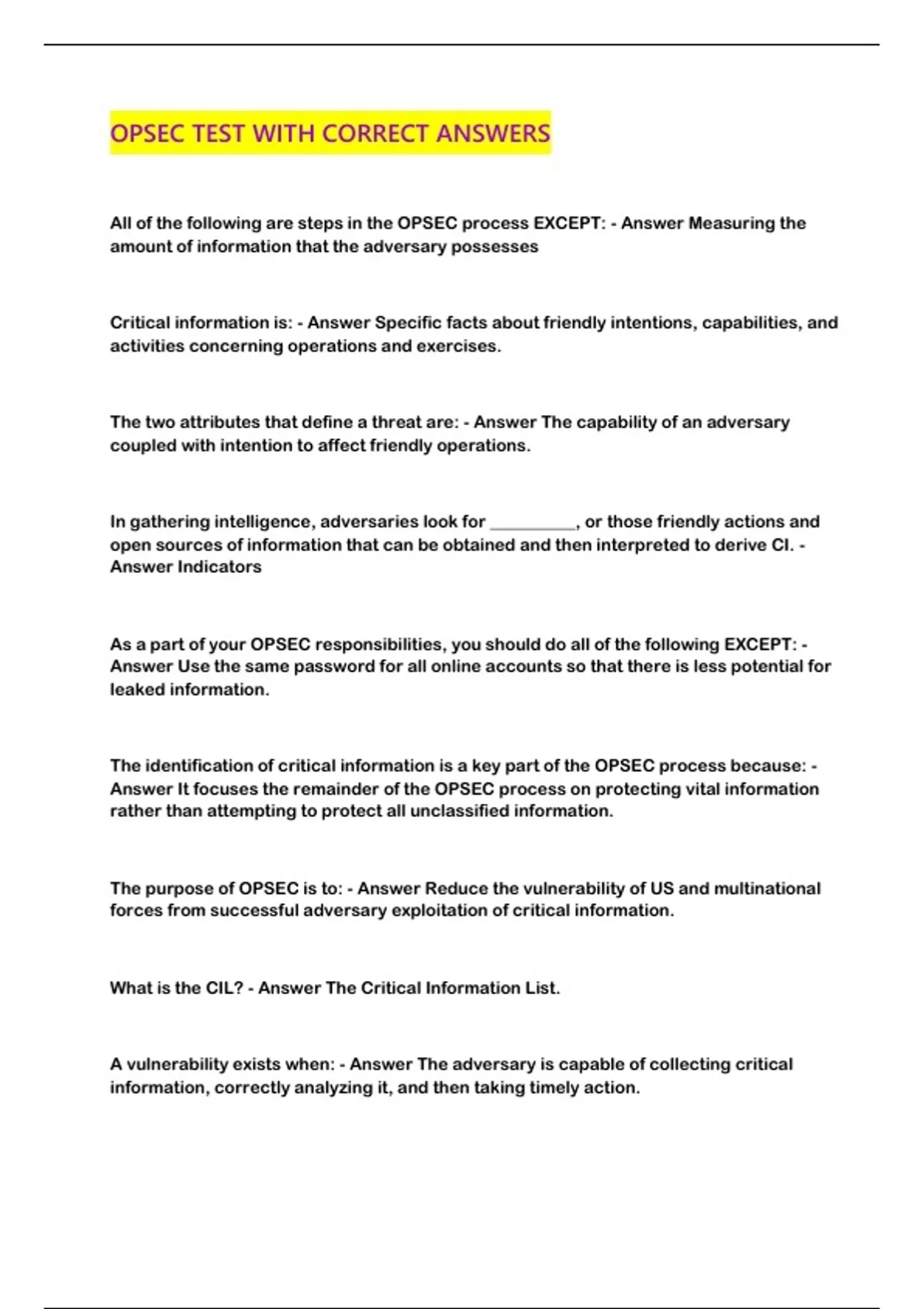 OPSEC TEST WITH CORRECT ANSWERS
