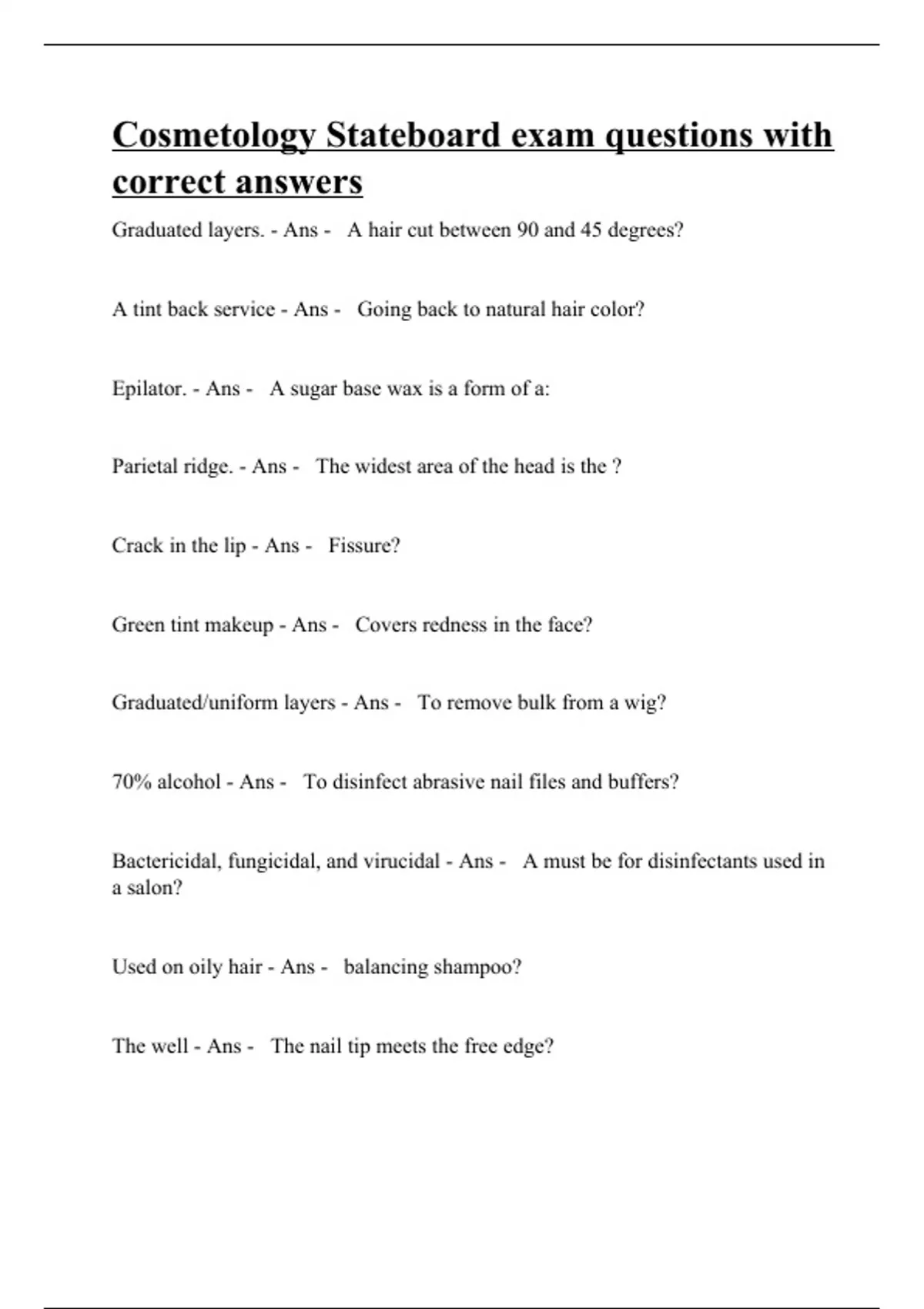 Cosmetology state board exam questions with correct answers