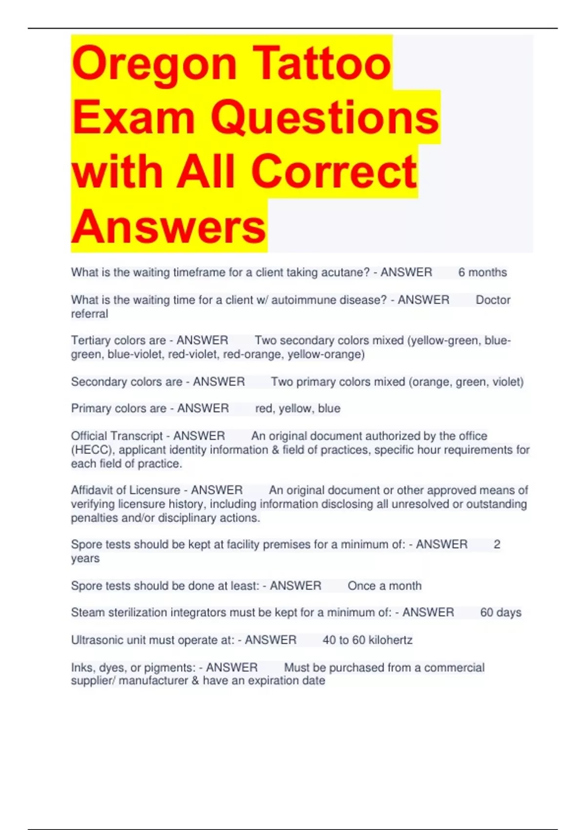 Bundle For Tattoo Oregon Test Questions with Complete Solutions