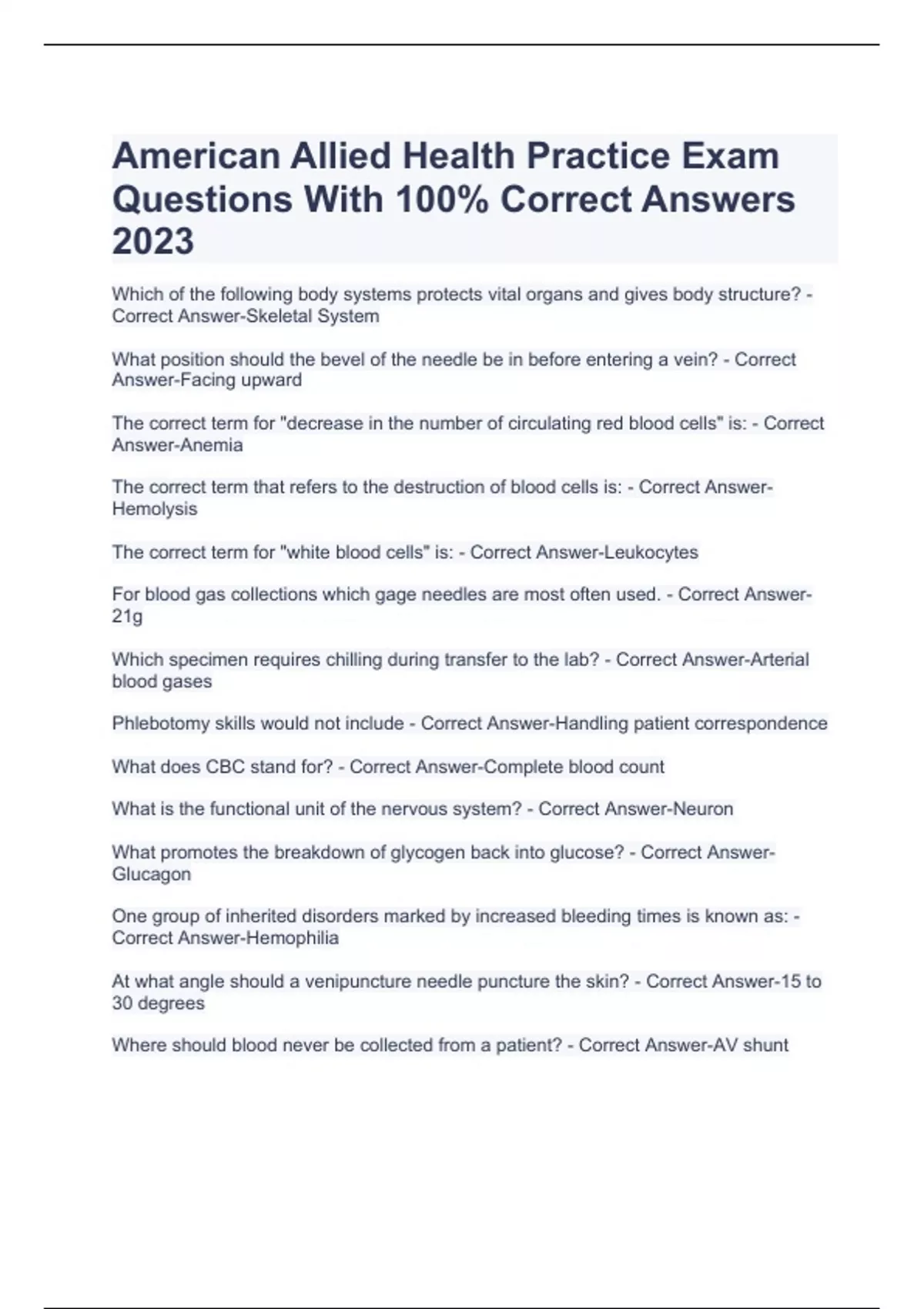Package deal for Allied Health American Allied Health Practice Exam Questions With 100% Correct Answers 2023