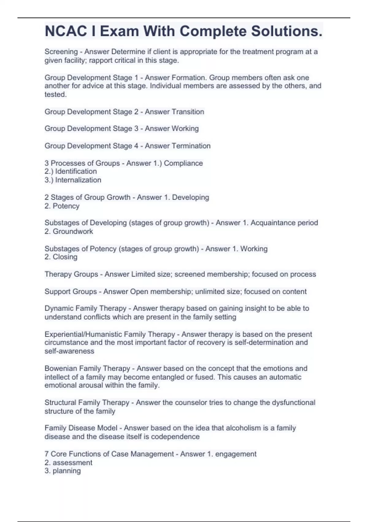 NCAC I Exam With Complete Solutions.,NCAC I and II Exam Part 1 & 2 Already Graded A+,NCAC II test questions well answered!!,NCAC Practice Test - Momentix Book Questions With Correct Answers!!,NCAC I and II Practice Test(Completed)2023,NCAC II, NCAC I Exam, NCAC I Pharmacology, NCAC Practice Test - Momentix Book, Alcoholics Anonymous (AA) Study Guid
