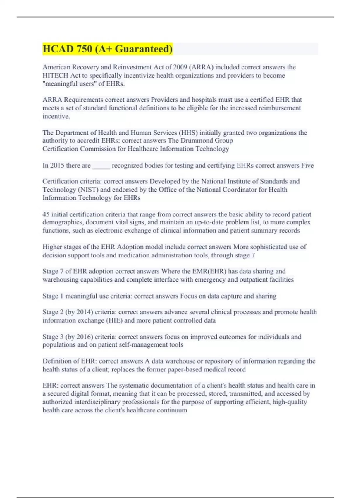 lsus hcad 750 module 3 (with error-free answers 100%) HCAD 750 (A+ Guaranteed) HCAD 750 (100% correct answers) HCAD 750 Informatics (with complete solutions) HCAD 750 Exam 2 (Already Graded A+) HCAD 750 Final Test (all errorless) HCAD 750 P2 (all correctly answered) lsus hcad 750 module 4 (100% correct answers) HCAD 750 Module 7 (all accurately ans