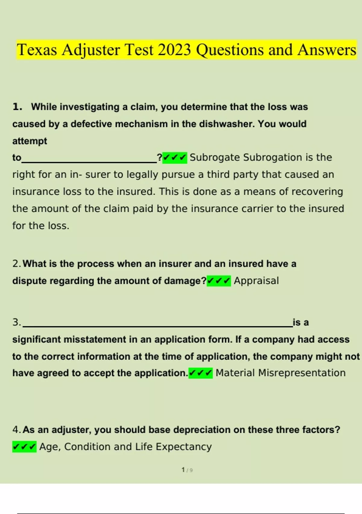 Texas Adjuster Exam 2023 Questions and Answers (Verified Answers by Expert)