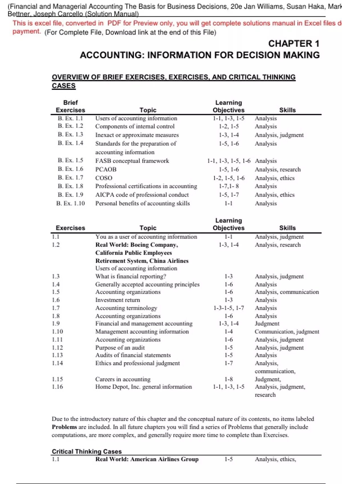 Financial and Managerial Accounting The Basis for Business Decisions, 20e Jan Williams, Susan Haka, Mark Bettner, Joseph Carcello (Solution Manual with Test Bank) Discount Price Bundle Download