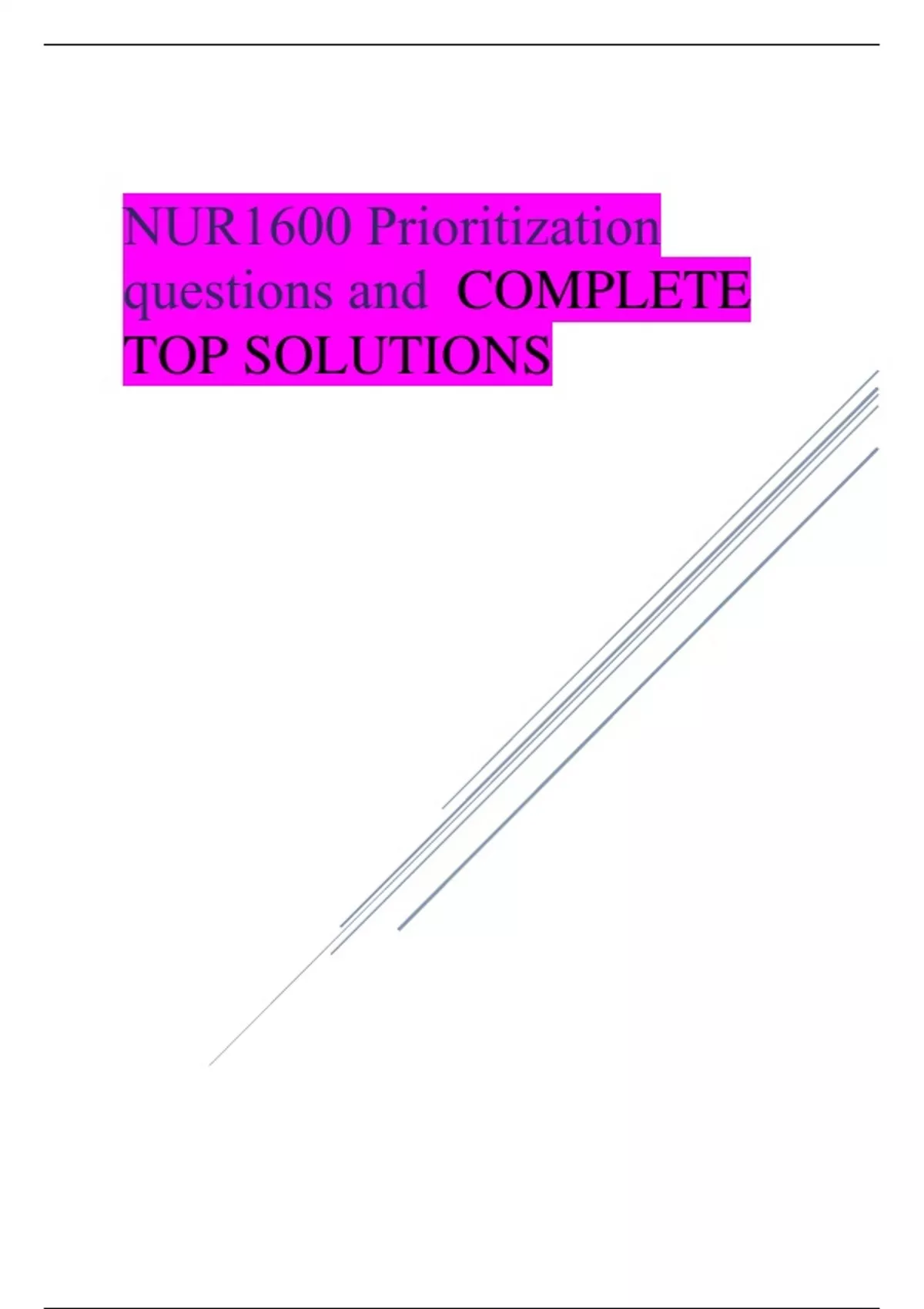 NUR1600 Prioritization questions and COMPLETE TOP SOLUTIONS