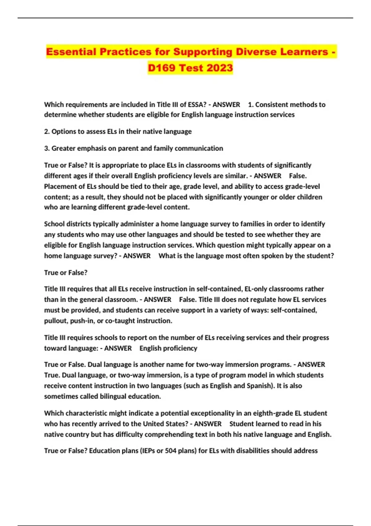 WGU D169 Packaged Exams 2023...
