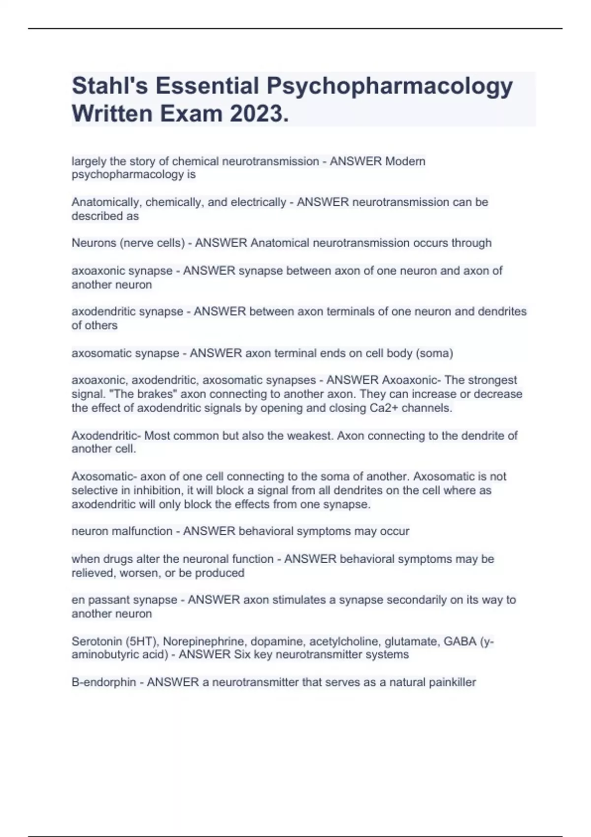 1 Exam (elaborations) Stahls Chapter 5: Antipsychotic agents Review Questions 2023. 2 Exam (elaborations) Stahl Chapter 5: Antipsychotics Exam Prep 2023. 3 Exam (elaborations) Multiple Choice Exercise 1.6 :Comprehensive Verified Solutions 2023. 4 Exam (elaborations) Who Said What? Question & Answer . 5 Exam (elaborations) Next section: