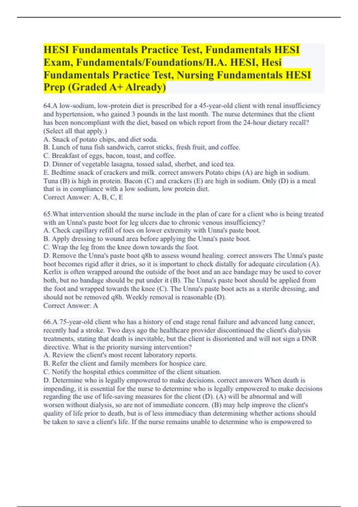 HESI Fundamentals Practice Test, Fundamentals HESI Exam, Fundamentals/Foundations/H.A. HESI, Hesi Fundamentals Practice Test, Nursing Fundamentals HESI Prep (Graded A+ Already) Evolve Fundamentals HESI (100% correct answers) HESI Fundamentals practice (Possible questions with verified solutions) Evolve HESI Fundamentals Practice Qs (with 100% corre