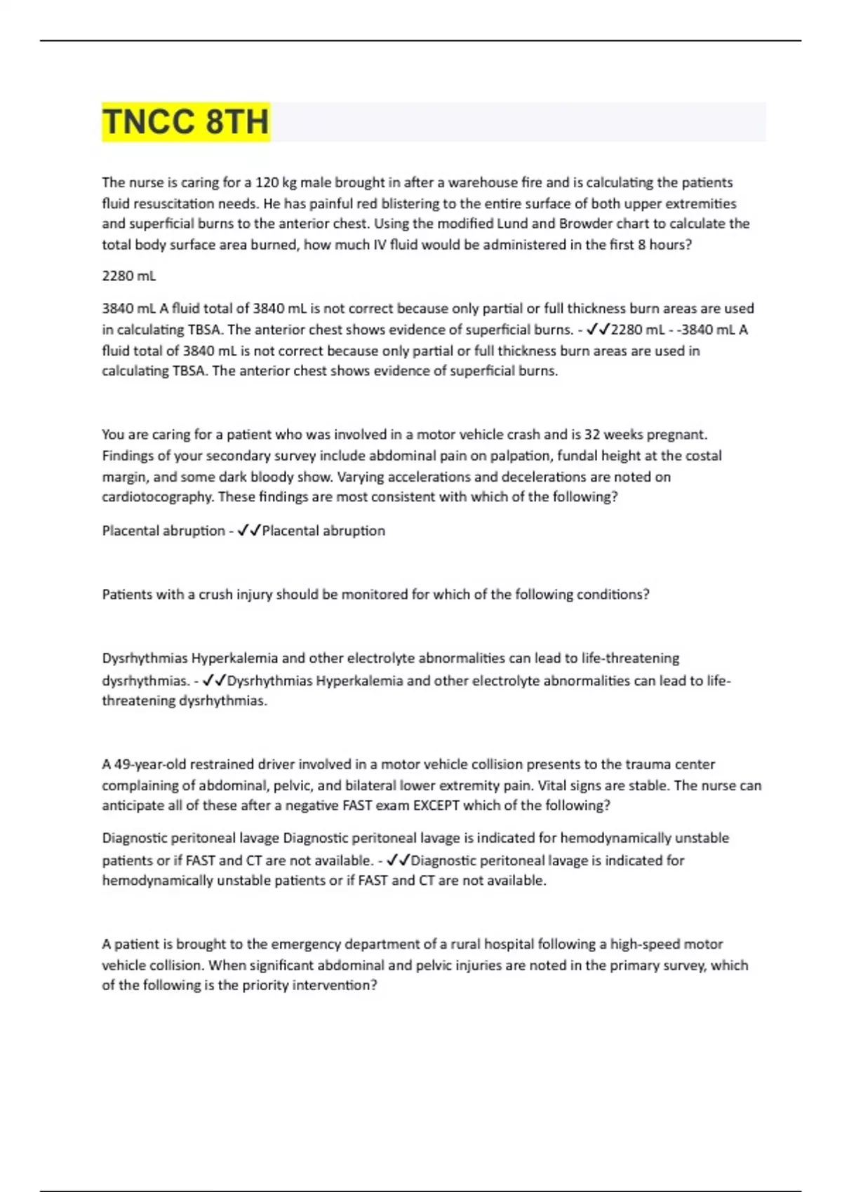 TNCC test prepA, TNCC Notes for Written Exam, TNCC Notes for Written Exam, TNCC Prep, TNCC EXAM, TNCC 8th Edition|| Questions With 100% Correct Answers | Verified