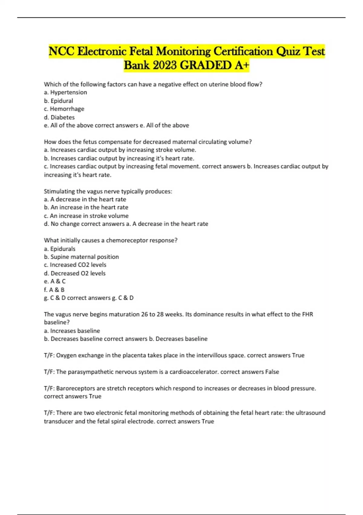 NCC EFM CERTIFIED BUNDLED Quiz Test Banks Graded A+ Complete Solution 100% VERIFIED
