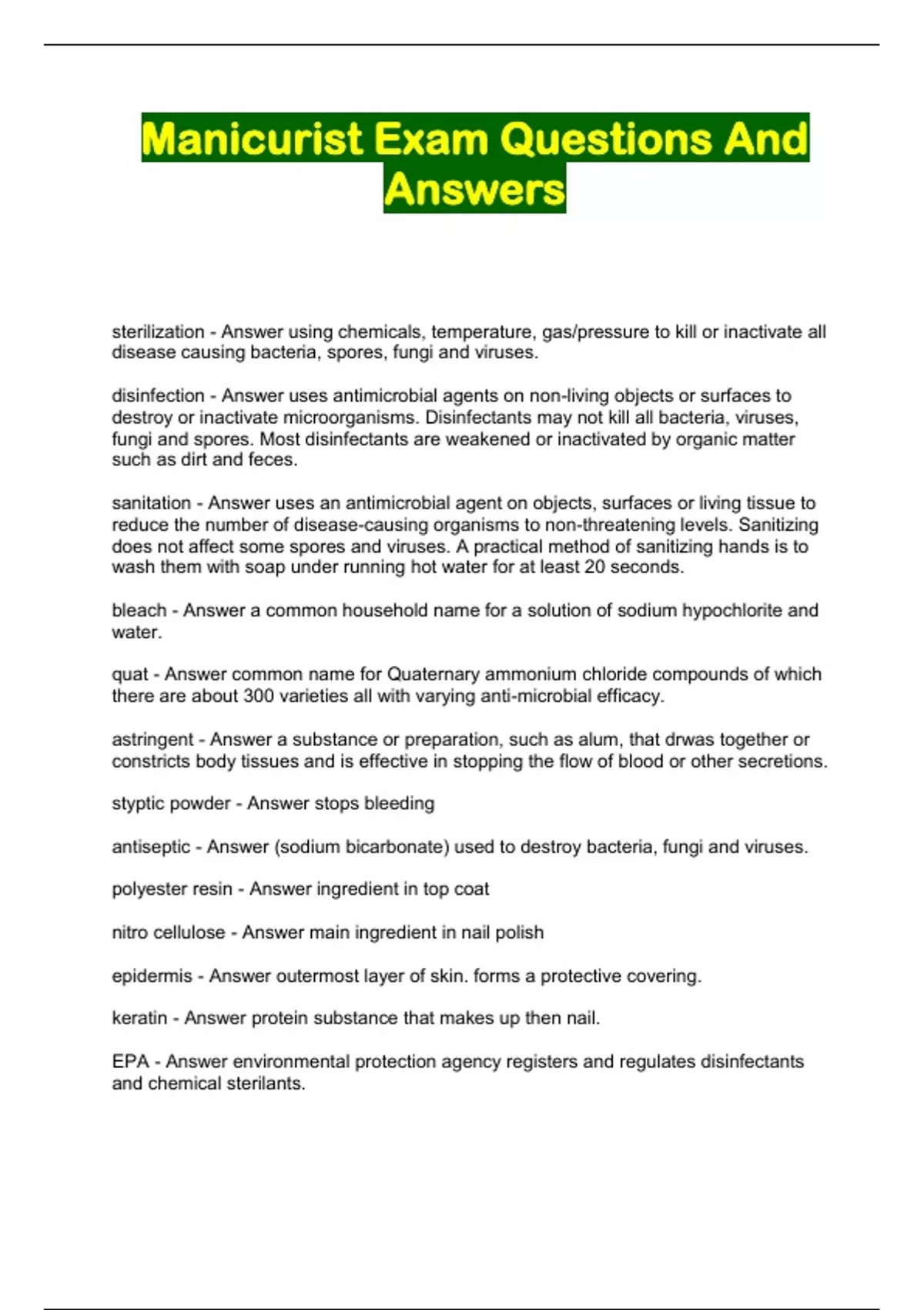 Manicurist Exam Questions And Answers