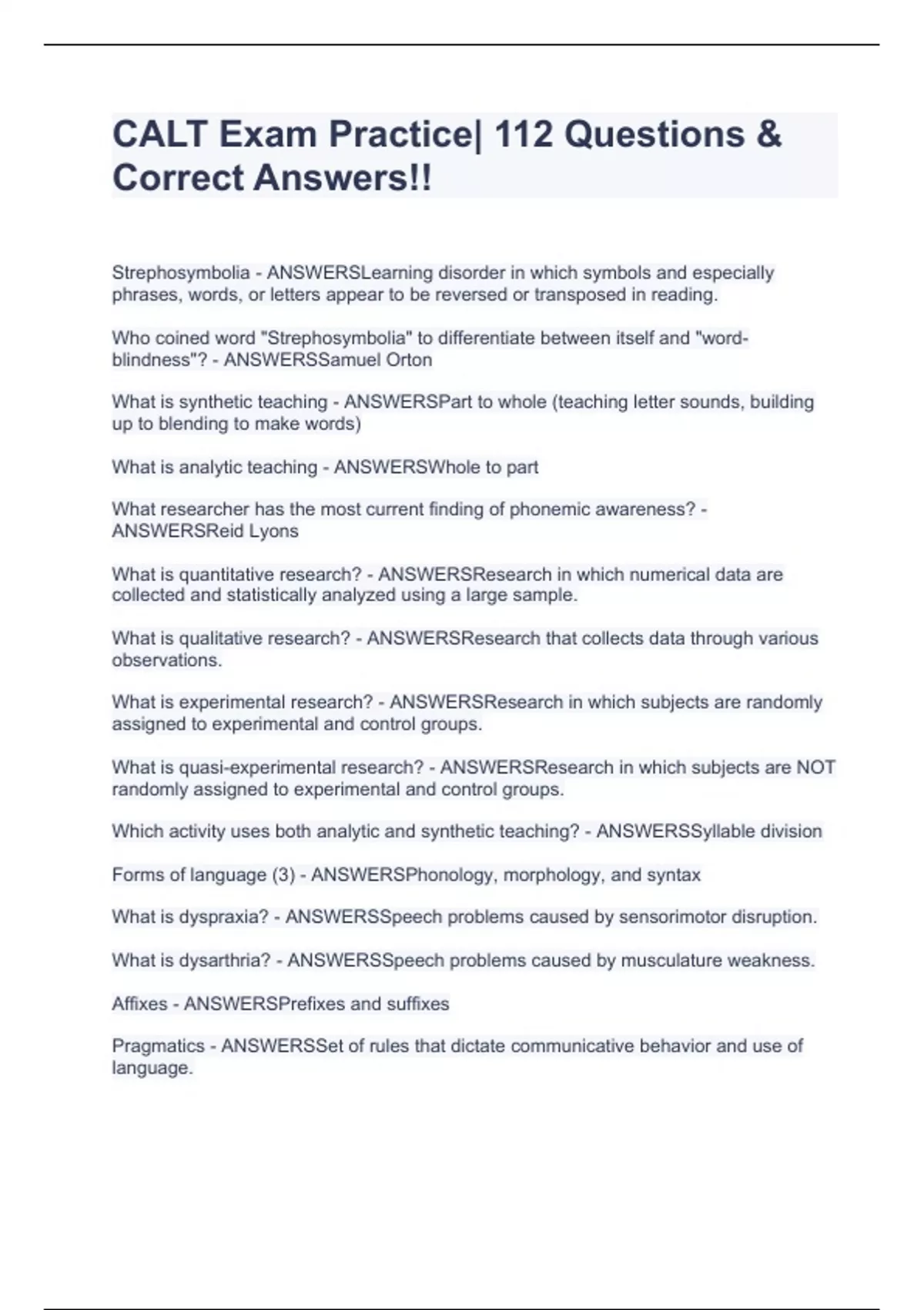 CALT Exam Prep Correct 100%