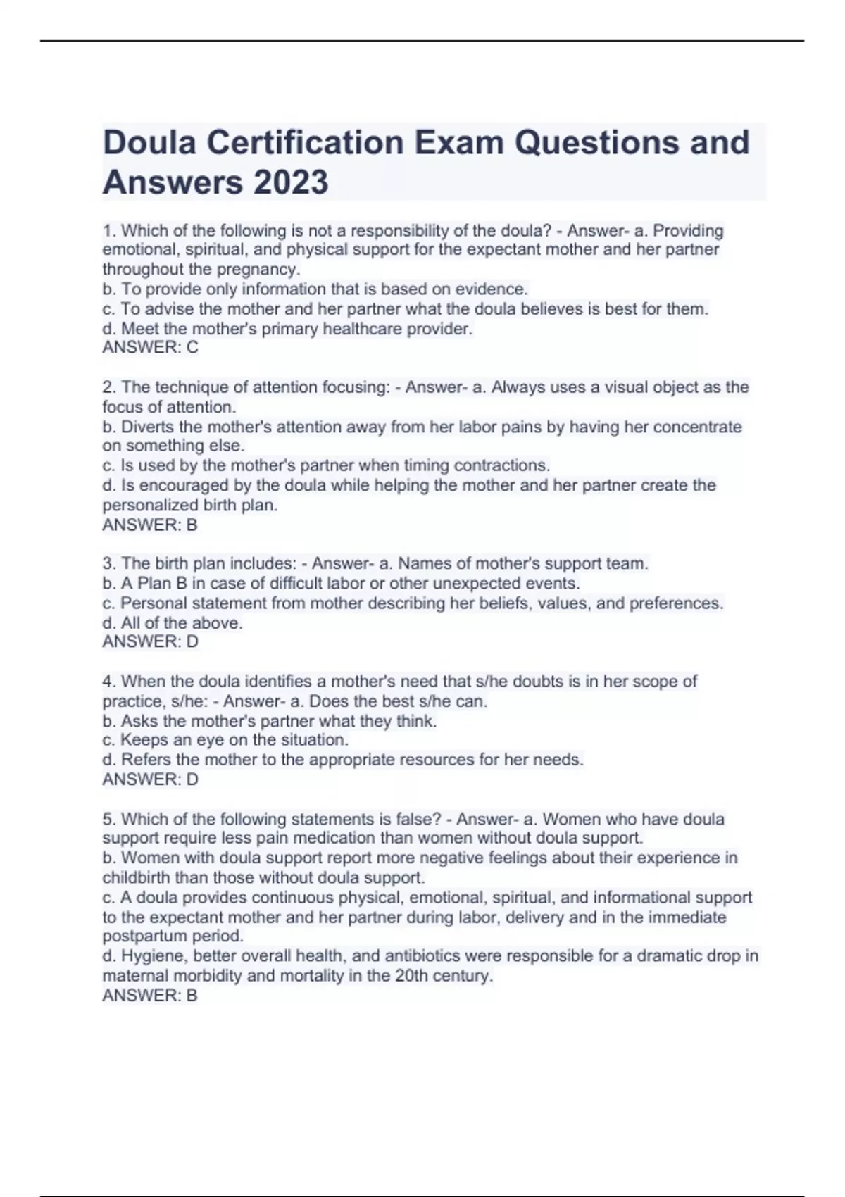 Doula Certification Exam Questions and Answers 2023 Doula Training Exam Questions with correct Answers ASDS Doula Final Exam with correct Answers Doula Exam Questions and Answers IAP Death Doula Certificate Course Questions and Answers Doula Final Questions and Answers 2023 Doula Exam 2023 Questions and Answers DOULA Exam Questions with correct Ans
