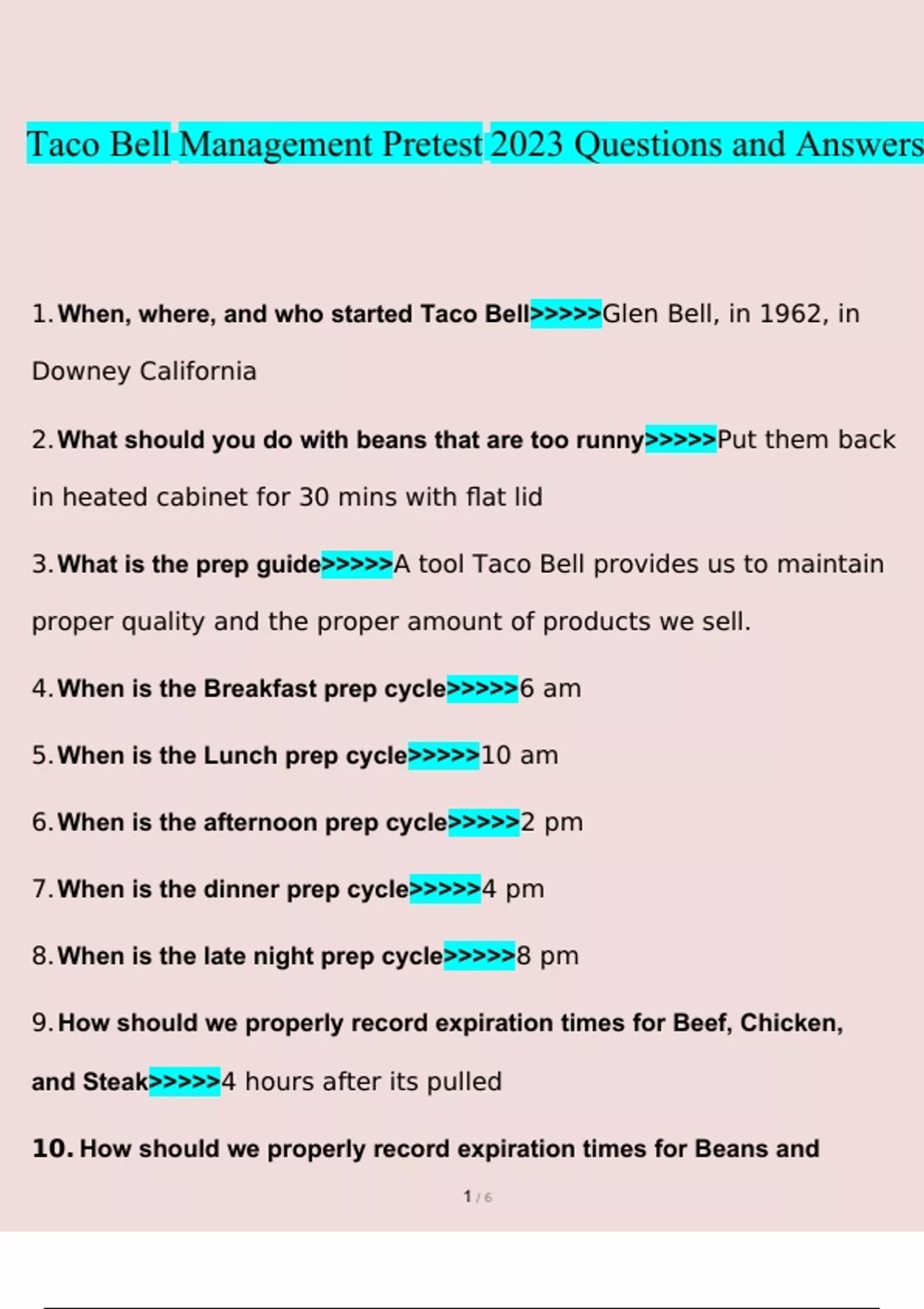 Taco Bell Shift Lead Ceritifcation. questions verified with 100% correct answers