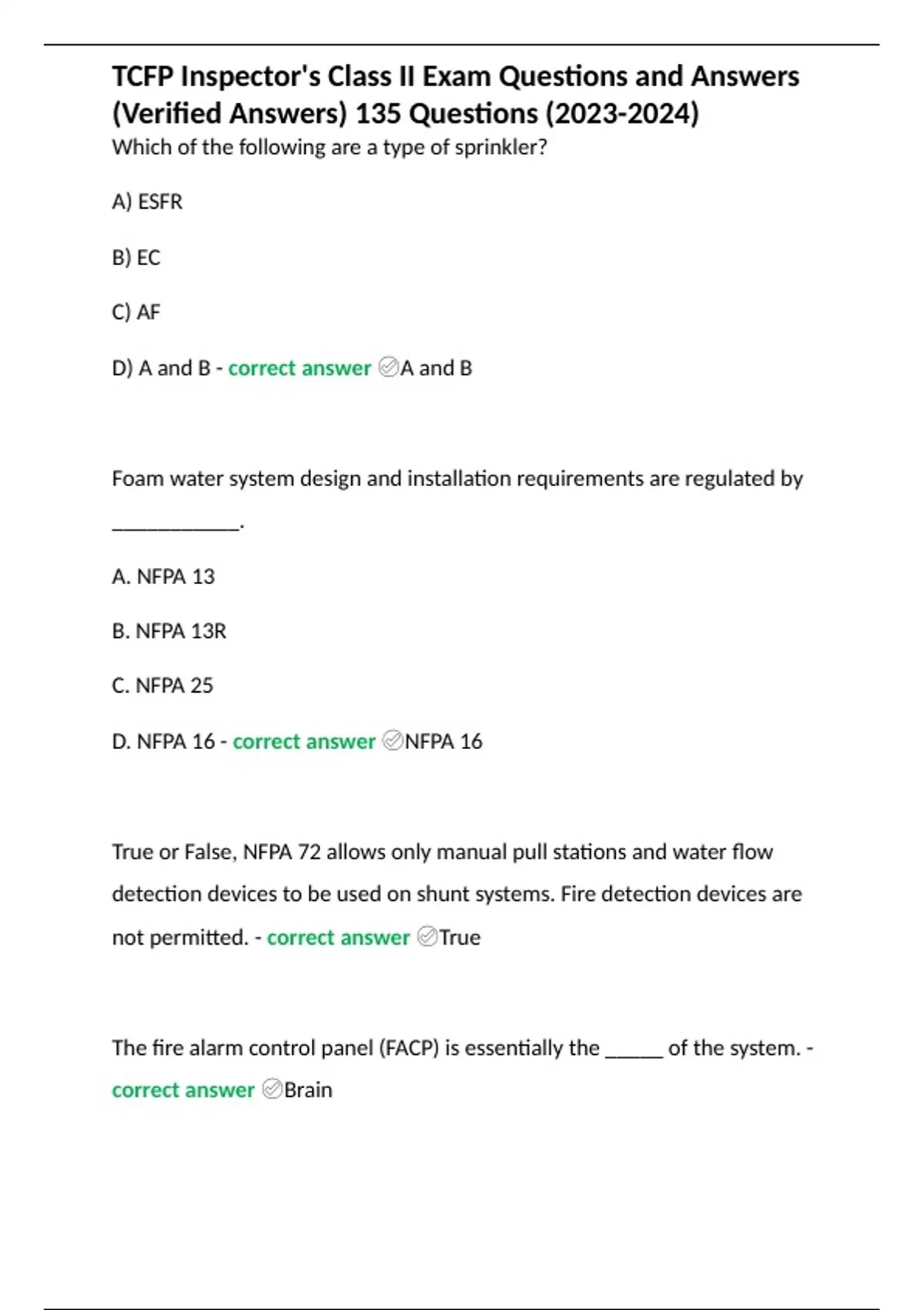 TCFP Plans Exam Questions and Answers () Verified Answers (267 questions) 2 Exam (elaborations) TCFP fire inspector chapter 1 Exam Questions and Answers (Verified Answers) 3 Exam (elaborations) TCFP Firefighter I/II Chapters 18-21 Test Questions and Answers (Latest ) Verified Answers 4 Exam (elaborations) TCFP fire in