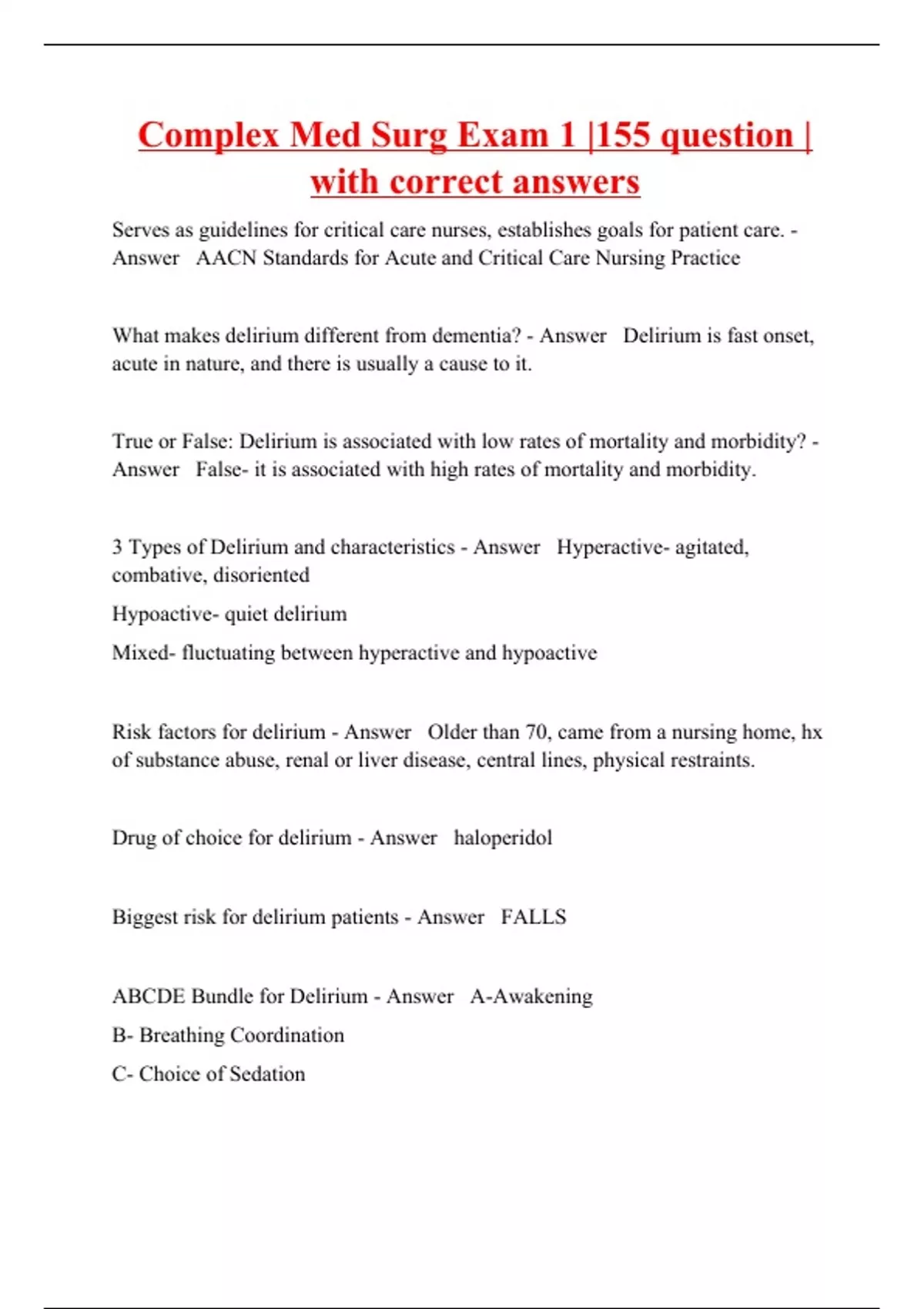 Complex Med Surg Exam 1 |155 question | with correct answers