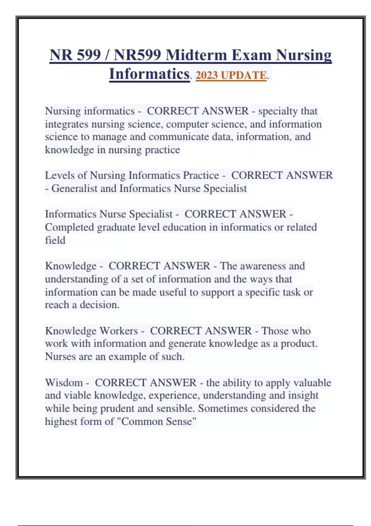 NR 599 MID-TERM EXAM NURSING INFORMATICS WITH WELL ELABORATED ANSWERS