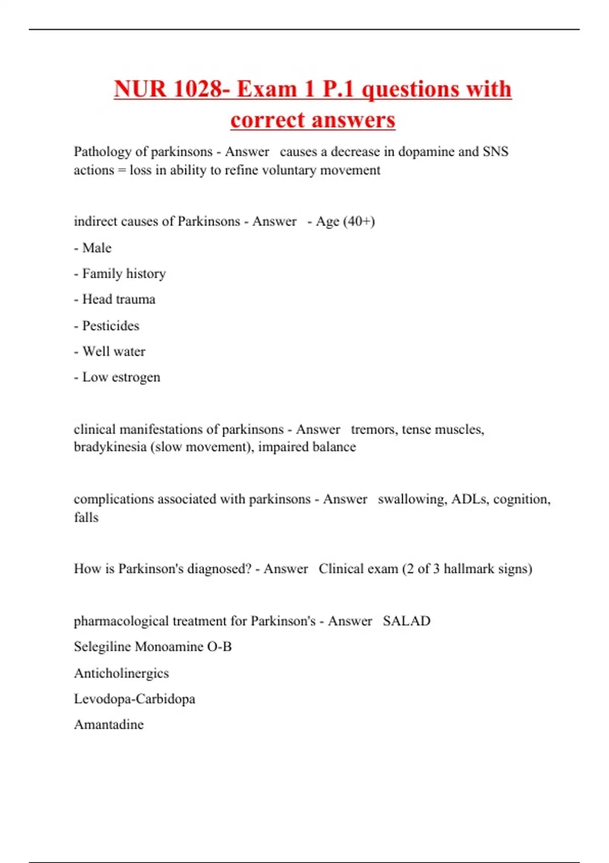 NUR 1028- Exam 1 P.1 questions with correct answers