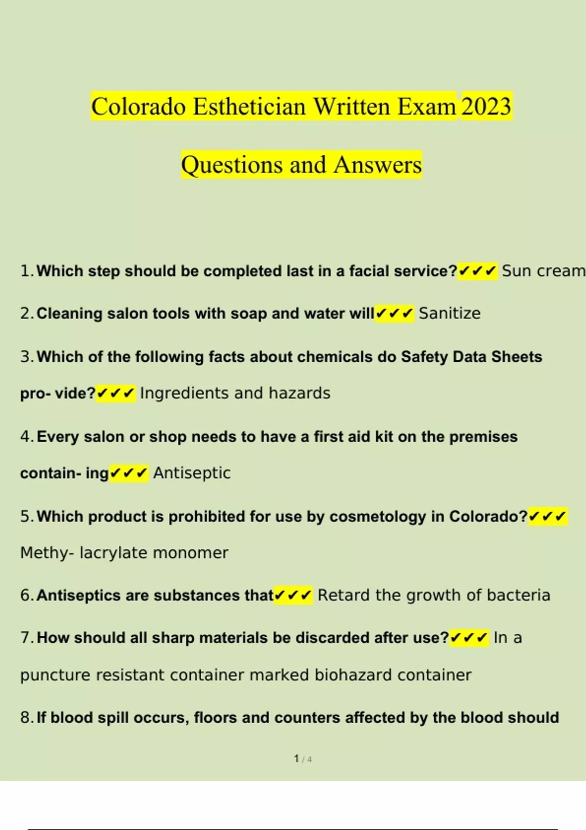 Colorado Esthetician Written Exam 2023 Questions and Answers (Verified Answers by Expert)