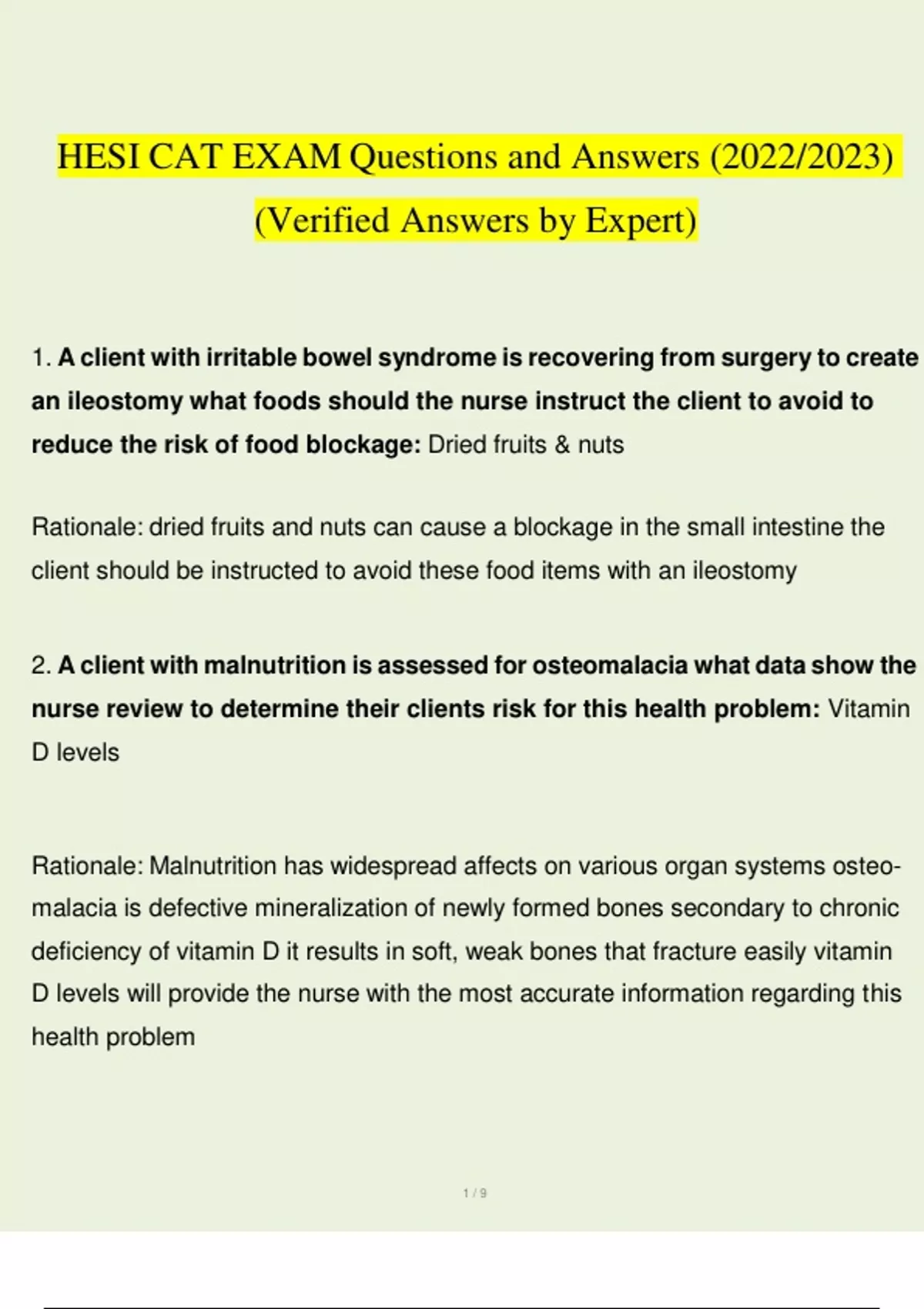 HESI CAT Practice Exam Questions and Answers (2022/2023) (Verified Answers by Expert)