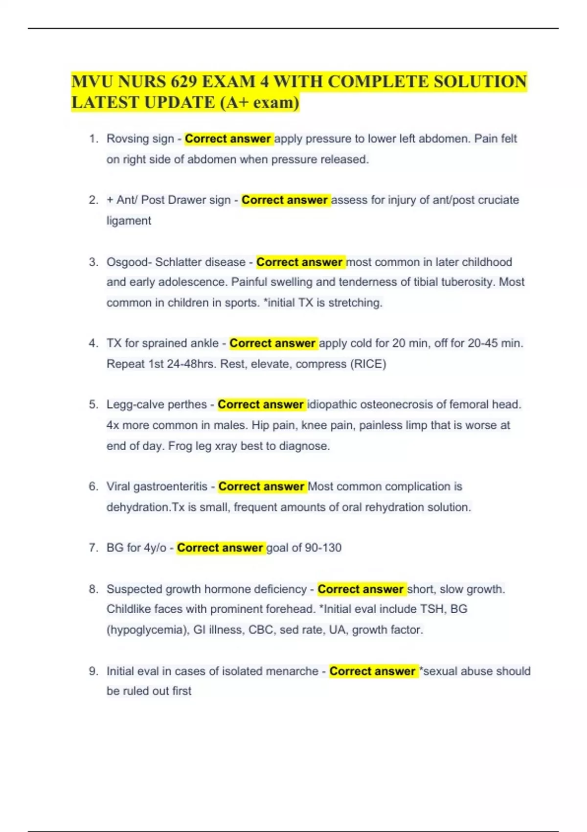 MVU NURS 629 ALL VERSIONS BUNLDED EXAMS WITH COMPLETE SOLUTION(Exam 1-4)