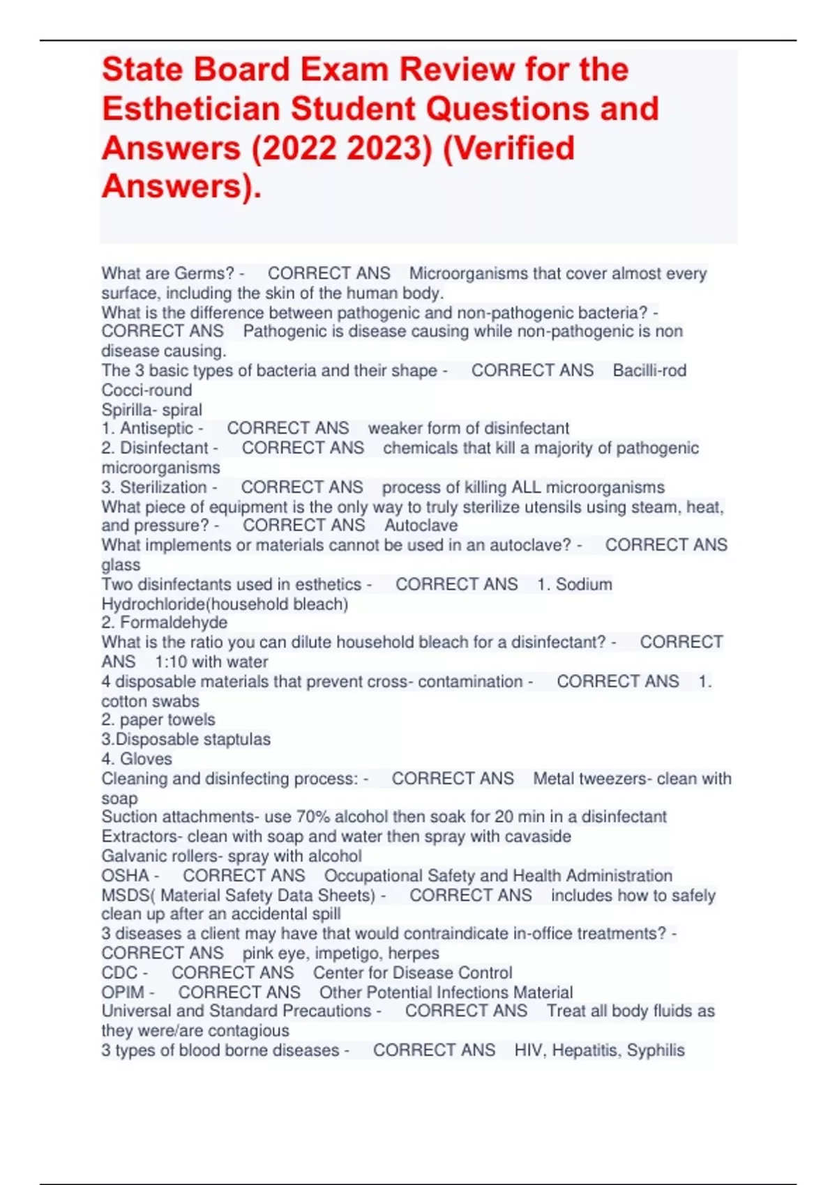 Esthetician State Board Bundled Exams /Download / Graded A+ Already passed