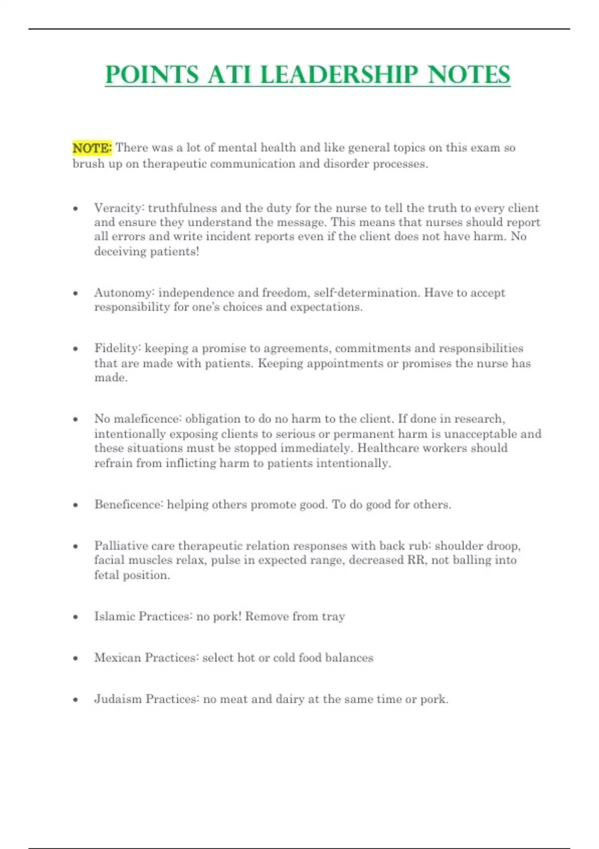 Points & Notes ATI Leadership BUNDLE - Latest 2023 / 2024