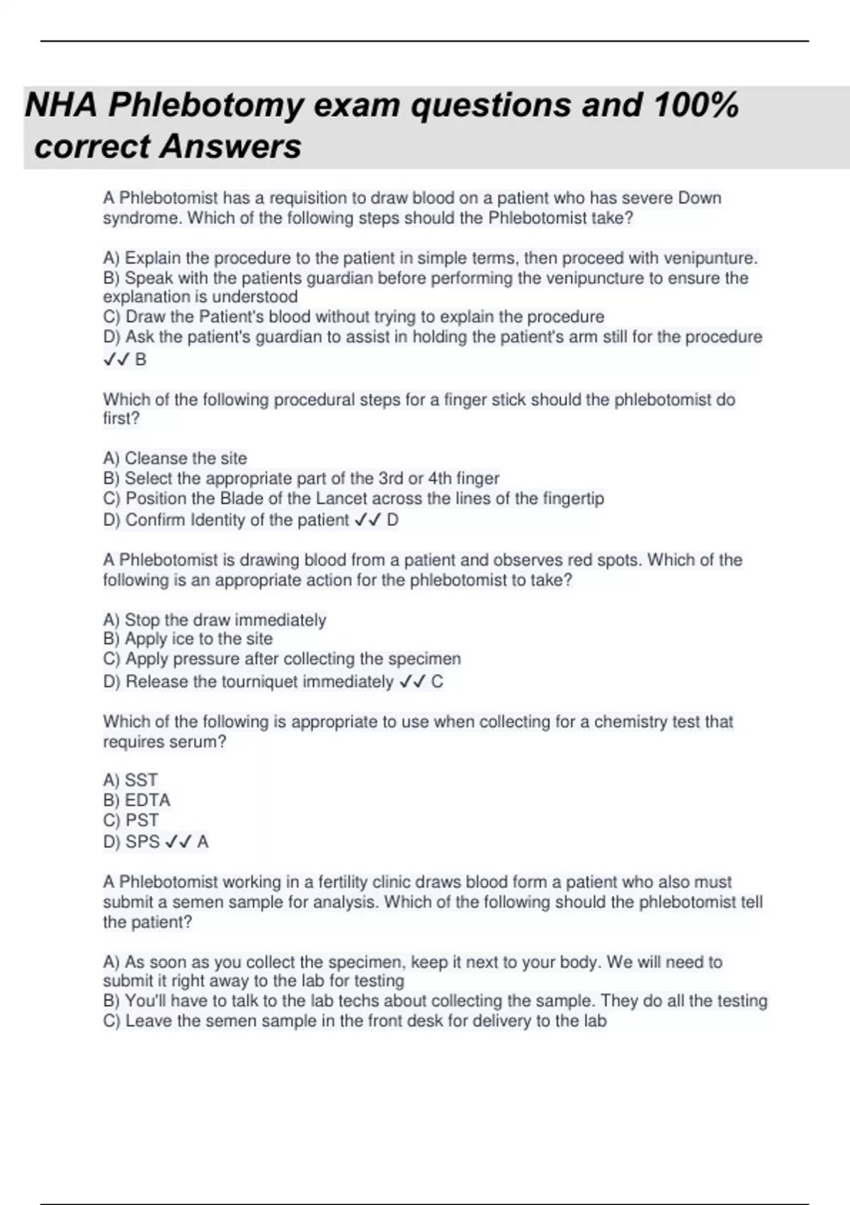 BUNDLE!!!! NHA Phlebotomy Exam Questions with complete solutions